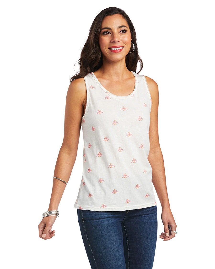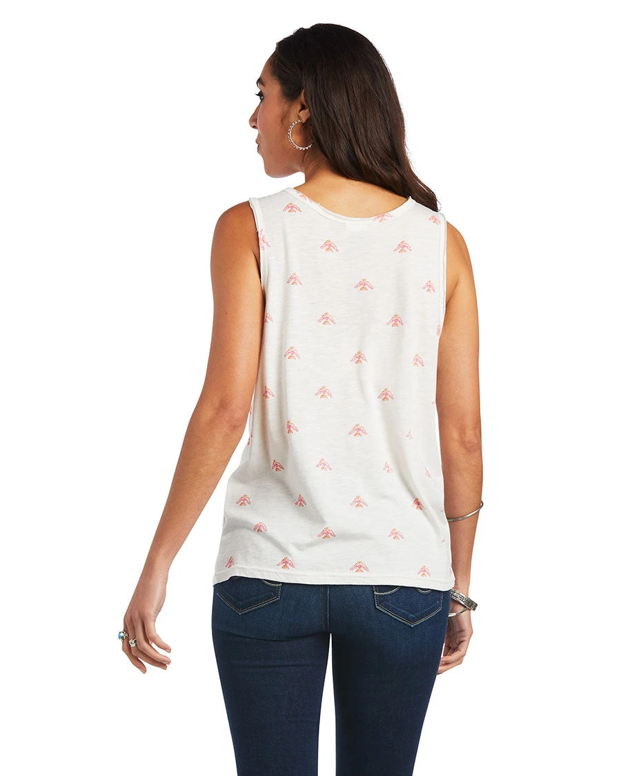 The raw-edge detail and Southwestern motifs add a little extra something to this everyday basic. Bra friendly with a flattering scoop neck.
