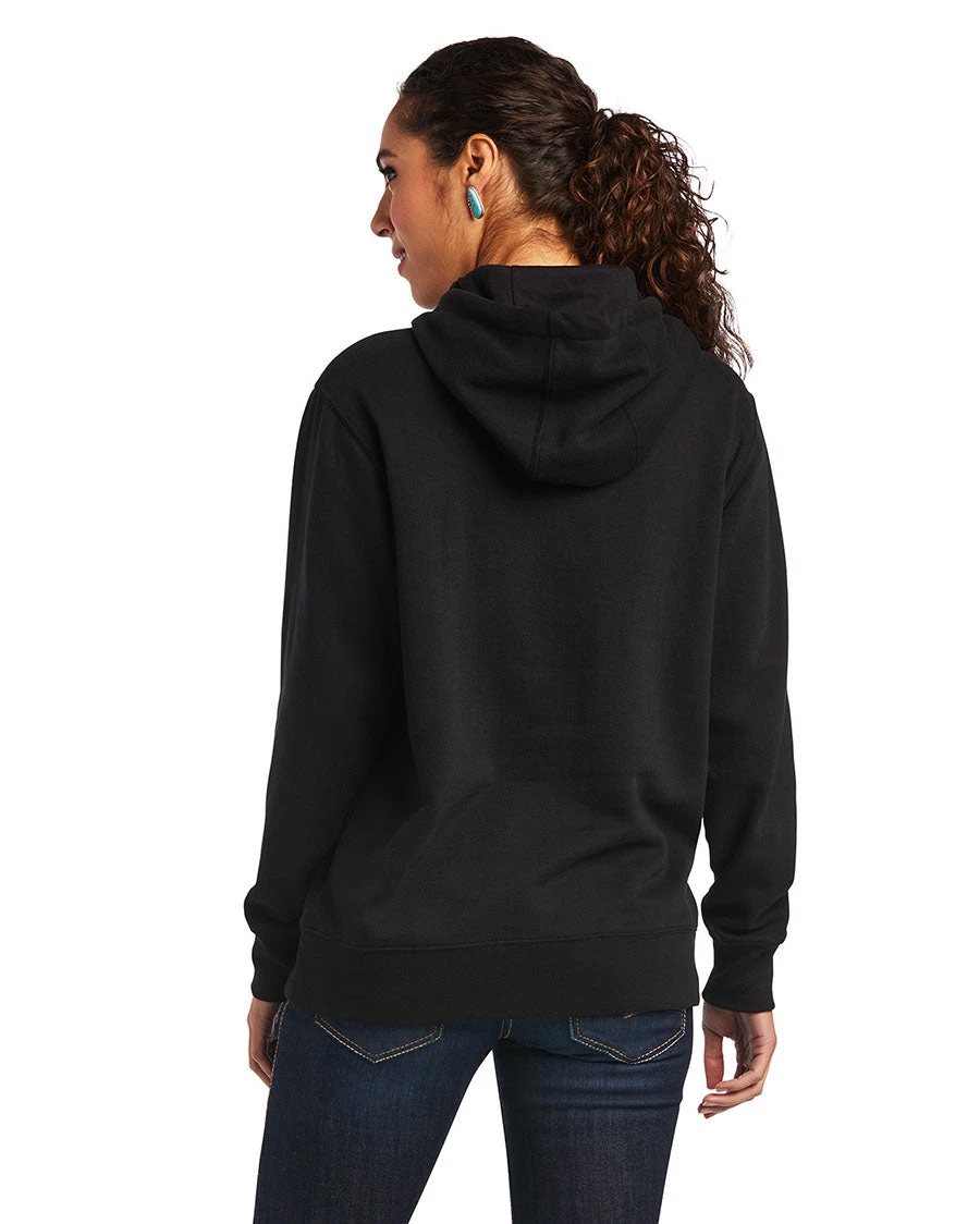 has a big kangaroo pocket and an embroidered Ariat logo that pays homage to