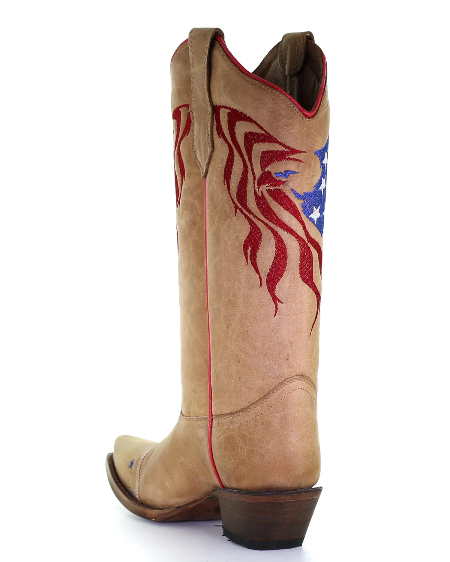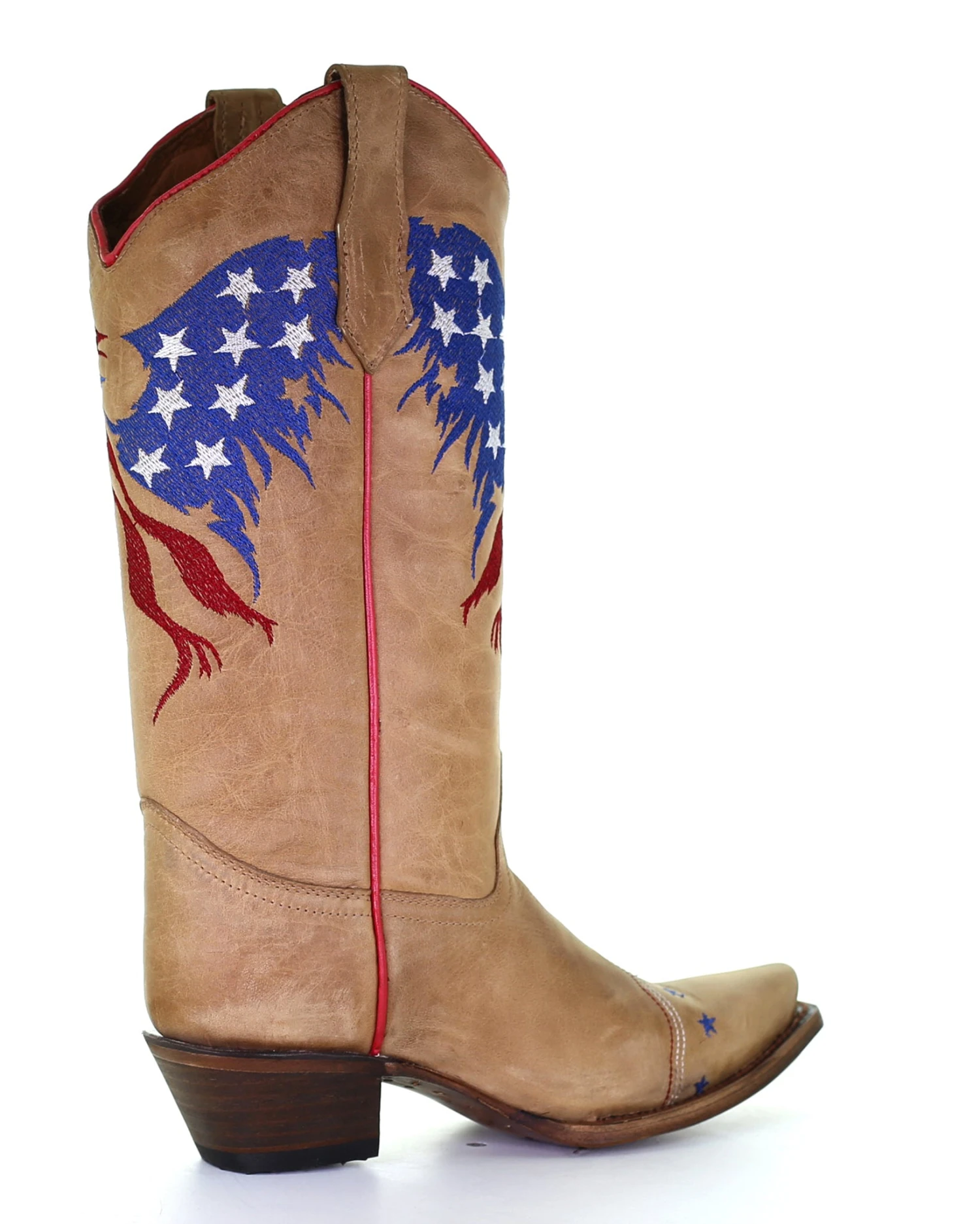 Introducing the Corral Women’s American Flag Western Boots: a stunning blend of tradition and flair, perfect for the proud, stylish, and free-spirited woman! These magnificent boots make a bold statement with their beautifully-embroidered American Flag and Eagle design on the shaft. Show off your patriotic side and love of country, all while staying on trend and turning heads wherever you go. Let the stars shine brightly on your toes with the intricately designed Stars on Toe feature, adding an extra touch of national pride and sophistication. Crafted with an alluring snip toe, these boots epitomize a classic Western silhouette that never goes out of style. Set yourself apart in a sea of cowboy boots, as these stunning Corral Women’s American Flag Western Boots are truly one of a kind. Dare to be different and make a statement with a pair of boots that celebrate the perfect harmony of patriotism, style, and quality. Don’t wait – slip into a pair of these enigmatic boots and let your feet do the talking. Order your Corral Women’s American Flag Western Boots today and enjoy the ultimate blend of pride, beauty, and unmatched craftsmanship. Whether you’re dressing up for a special event or adding a touch of panache to your everyday wardrobe, these boots are a perfect choice. Stand tall and claim your freedom with every step you take. Order now!