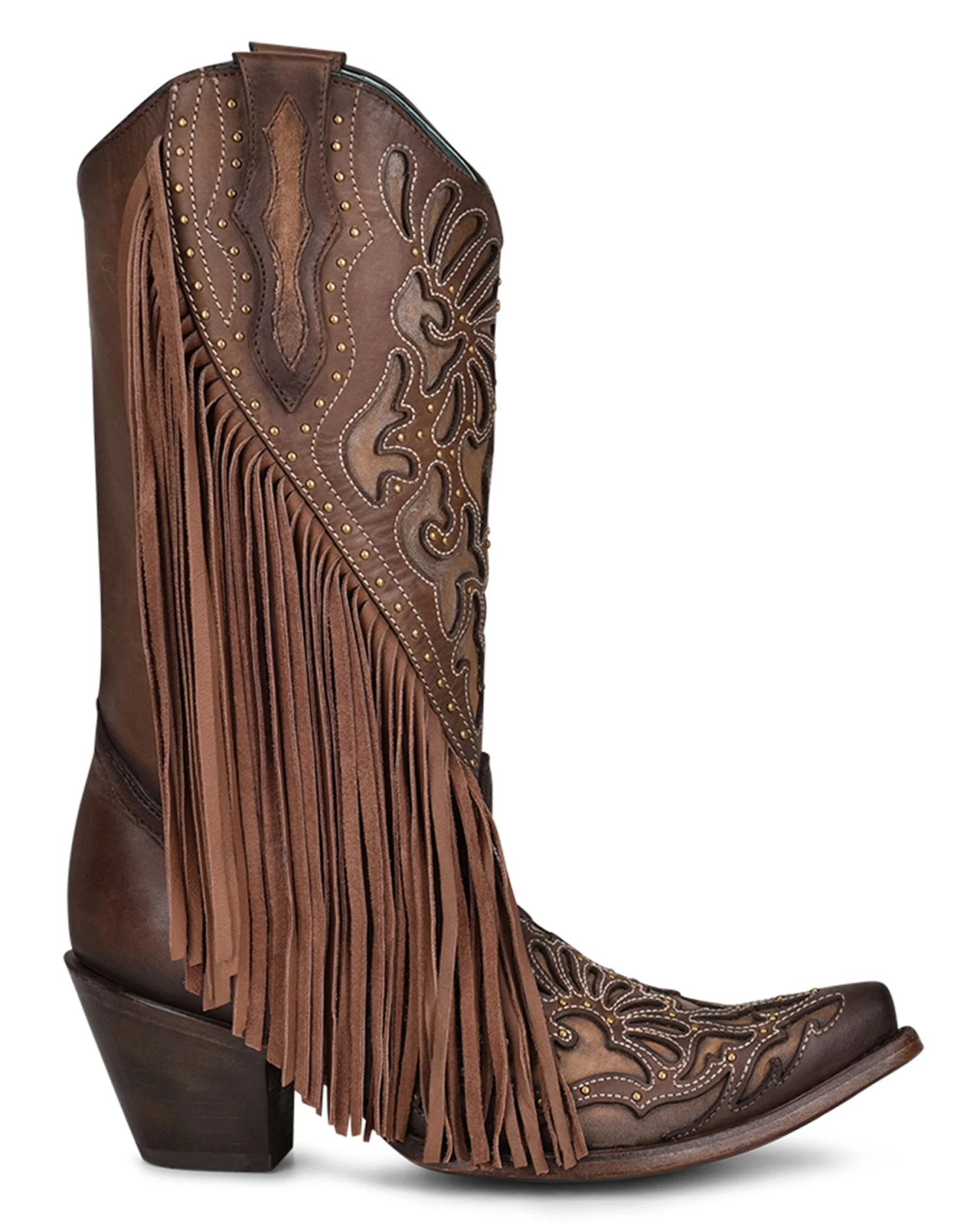 Introducing the Corral Women’s Chocolate Fringe & Studs Western Boots, an exquisite combination of style, comfort, and elegance that brings a touch of authentic Western charm to your wardrobe. These boots are meticulously crafted with intricate brown leather inlay and embroidery that showcases an exceptional level of detail and sophistication. The studded detail on these boots adds a hint of edginess to the overall design, making them perfect for women who love to showcase their unique personalities. The neutral color palette ensures versatility, so you can strut your stuff with confidence, knowing these boots will complement almost any outfit. What sets these western boots apart is the fabulous fringe, adding an extra flare when dancing, making you the center of attention at any event. Corral Women’s Chocolate Fringe & Studs Western Boots are designed for the modern cowgirl who appreciates the finer details, making them the must-have addition to your Western footwear collection.