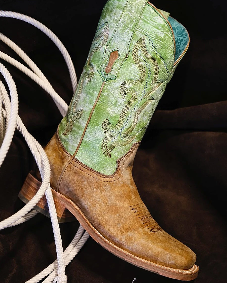 Introducing the Corral Women’s Classic Square Toe Western Boots – the perfect blend of tradition and flair in a stylish yet rugged design. These one-of-a-kind boots feature a sophisticated square toe with a gorgeous brown distressed finish for that authentic, well-worn look. But that’s not all – the vibrant green shaft adds a pop of color that sets these boots apart from the rest, making you the center of attention at any rodeo or country event. A perfect combination of comfort and style, these boots also boast intricate light brown embroidery that gracefully adorns the shaft. This elegant detailing not only adds to the visual appeal of the Corral boots but also pays homage to traditional Western wear with a contemporary twist. The Corral Women’s Classic Square Toe Western Boots are more than just a fashion statement – they’re designed with your needs in mind. You’ll appreciate the convenience of easy on/off access and the comfortable fit that makes these boots a pleasure to wear, whether you’re line dancing with friends or exploring the great outdoors. Order your pair of Corral Women’s Classic Square Toe Western Boots today and embrace the perfect fusion of tradition and innovation! You deserve nothing less.