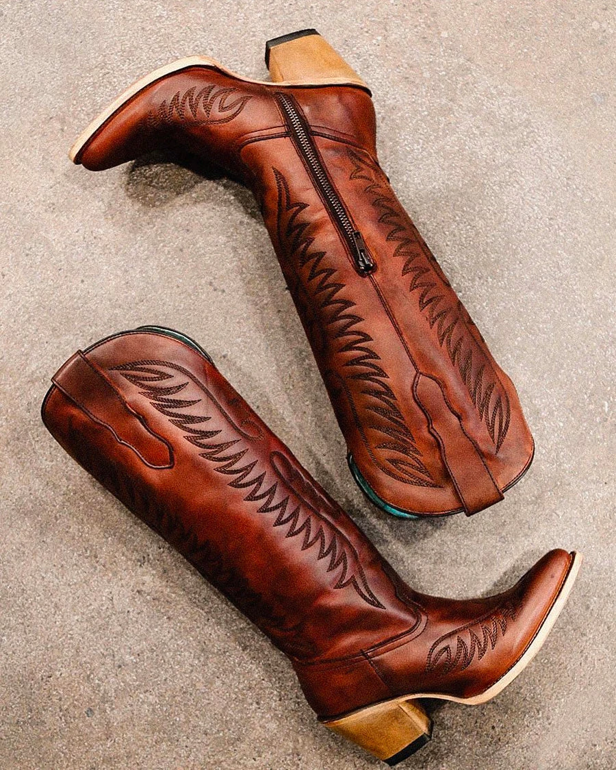 Introducing the all-new Corral Women’s Embroidery Western Boots – a perfect blend of style, elegance, and a touch of the Wild West. Designed for the strong, sophisticated woman who embraces her inner cowgirl, these tall fashion boots are a must-have addition to your wardrobe. Crafted with high-quality leather, these beautiful brown boots exude grace, charm, and a sense of adventure. The intricate embroidery detailing sets them apart from the rest, adding a touch of elegance and femininity to every step you take. The 3” cowboy heel lifts you to new heights, accentuating your figure, and providing you with that extra boost of confidence. Pair them with your favorite skinny jeans or a flowing summer dress – these boots will undoubtedly elevate your outfit to the next level. Whether you’re headed to a casual brunch or a chic evening soiree, showcase your impeccable taste in fashion with these timeless boots. So, say “howdy” to your new favorite footwear and start turning heads.