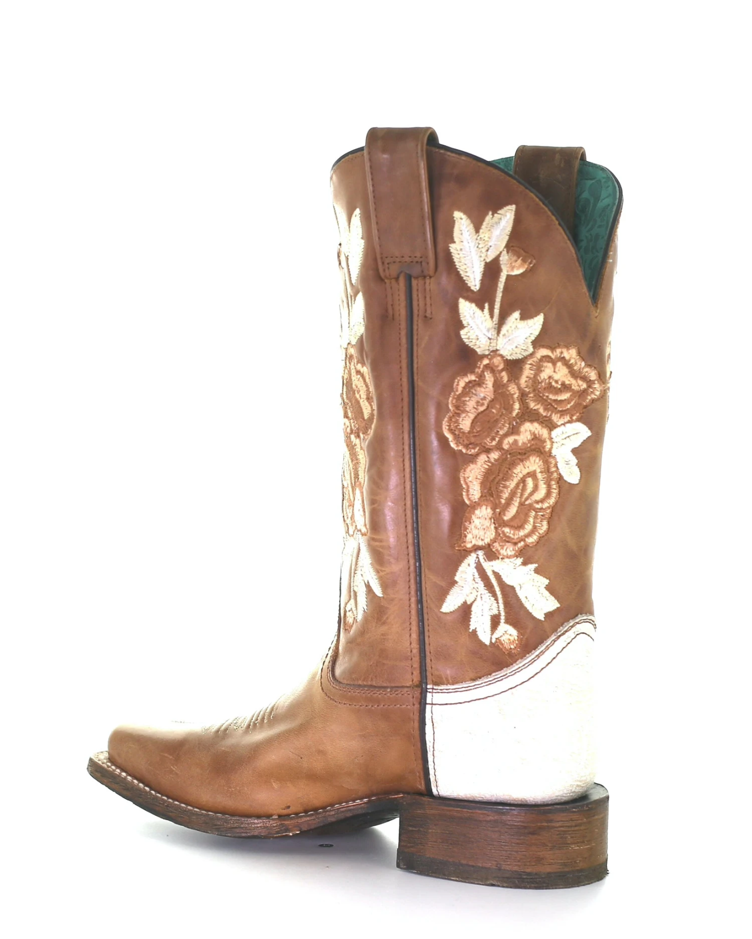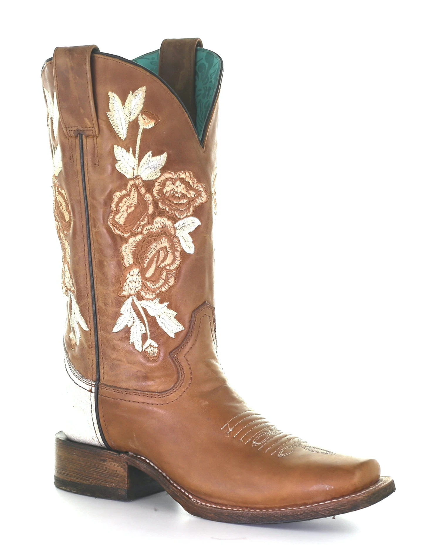 Introducing the captivating Corral Women’s Floral Embroidery Western Boots- a harmonious blend of style, comfort, and unparalleled craftsmanship. Handcrafted and meticulously designed, our craftsmen have transformed a simple pair of boots into a magnificent work of art, where every stitch tells a story. The narrow square toe exudes a classic Western charm, while the chic blend of light stitching and mocha brown leather adds versatility to your wardrobe. The breathtaking floral embroidery on the shaft showcases an intricate, enchanting pattern, bringing together tradition and modernity into the perfect fashion statement. Set yourself apart from the crowd with theCorral Women’s Floral Embroidery Western Boots. Experience the unmatched quality, impeccable design, and ultimate convenience that is synonymous with the Corral Women’s brand. Don’t wait any longer, step into a world of unparalleled elegance and charm, order now and become a part of the Corral Women’s legacy, because style and grace are just a click away!