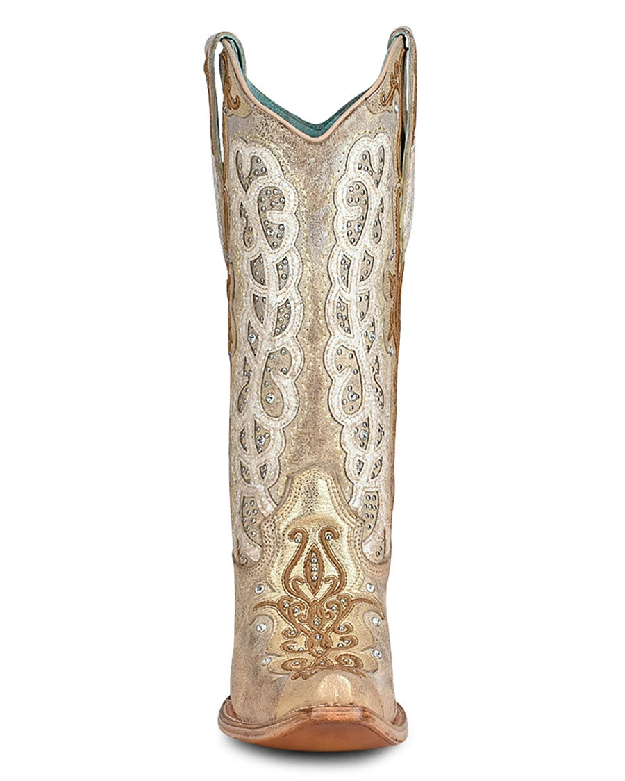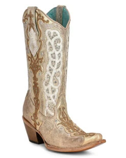 Introducing the dazzling Corral Women’s Overlay Embroidery Studs & Crystals Western Boots – where refined elegance meets rugged Western style. Designed for the modern cowgirl who demands both luxury and durability, these exquisite boots showcase your unparalleled taste and exude high-quality craftsmanship. Step into a world of sophistication with stunning tan leather, complemented by intricate gold, brown, and white overlays. This marvelous combination creates a captivating visual experience that will leave onlookers mesmerized. The snip-toe design adds an extra element of flair, ensuring these boots truly stand out from the crowd. But that’s not all. The true showstopper of these boots is the meticulous detailing. Be prepared to dazzle wherever you go, as the sparkling silver crystals delicately catch the light, creating an enchanting display that’s impossible to ignore. The artful embroidery and strategically placed studs add a touch of Western charm to complete the ultimate statement piece for your wardrobe. Don’t miss your chance to turn heads and make a lasting impression. It’s time to unleash your inner cowgirl and step into the world of high-fashion Western wear. Shop now and experience the unmatched style and comfort of the Corral Women’s Overlay Embroidery Studs & Crystals Western Boots – the ultimate addition to your fashion-forward wardrobe.