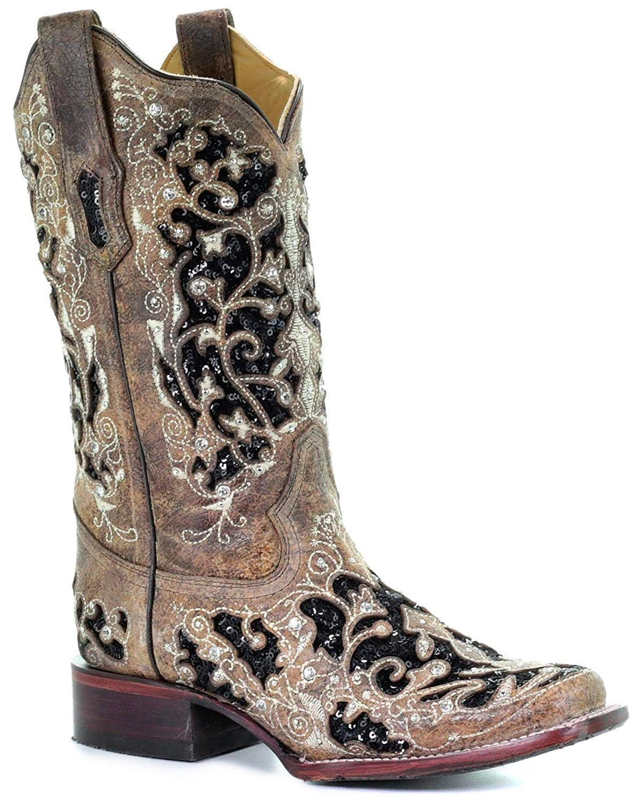 Introducing the Corral Women’s Sequin Inlay Floral Embroidered Boots – an exquisite combination of style and craftsmanship that will make you stand out on every occasion. With their stunning sequin inlays and intricate floral embroidery, these boots are a true work of art that blend classic design elements and modern embellishments. Each stitch complements the beautiful design crafted into the boot. Furthermore, the decadent stud and rhinestone detailing bring the perfect touch of glamour and sparkle to turn heads wherever you go. Designed with a square toe for a comfortable and elegant fit, these must-have boots will leave an unforgettable impression. Perfect for a night on the town, a romantic dinner, a country music festival, or even the rodeo, the Corral Women’s Sequin Inlay Floral Embroidered Boots will be your go-to pair for any event. Don’t miss out on the chance to make a stunning statement with fashion and class. Order your pair of Corral Women’s Sequin Inlay Floral Embroidered Boots today and embrace your inner cowgirl chic.