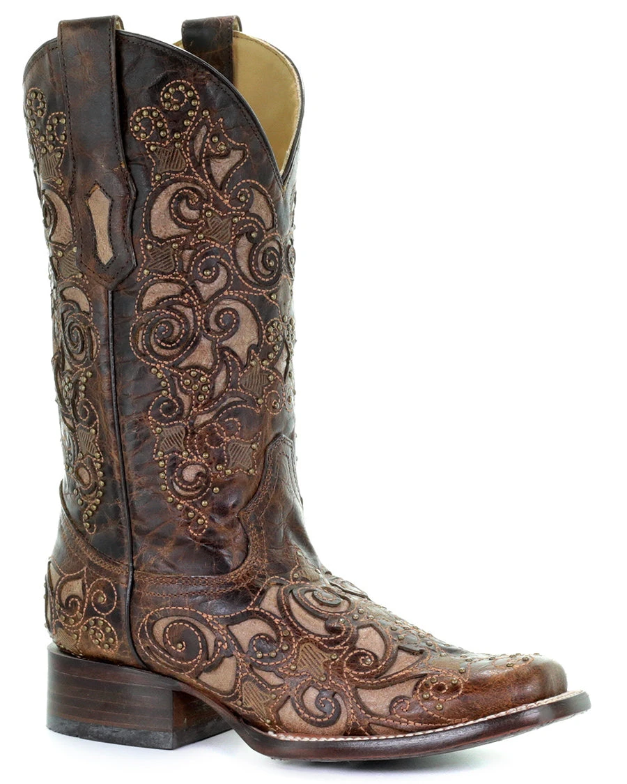 Introducing the Corral Women’s Studded Inlay Western Boots, the perfect blend of style, comfort, and craftsmanship. The boots feature a prominent and fashionable square-toe design, every step you take will confidently flaunt the intricate tan stitching that lines the entirety of the boot, creating an eye-catching and unique pattern that showcases your style. Further elevating the design, our Corral Women’s Studded Inlay Western Boots are adorned with exquisite stud detailing, which adds an edgy and chic touch to the already alluring appearance. Every element of the boot comes together seamlessly, making it the statement piece that every wardrobe needs. Suitable for a night out on the town, a special event, or just as your everyday favorite pair of boots, Corral Women’s Studded Inlay Western Boots effortlessly cater to your every need. Crafted with precision and attention to detail, these boots will quickly become an essential staple in your collection that you’ll cherish for many years to come. Don’t miss out on the opportunity to step out in style and comfort with these remarkable and fashionable Corral boots.