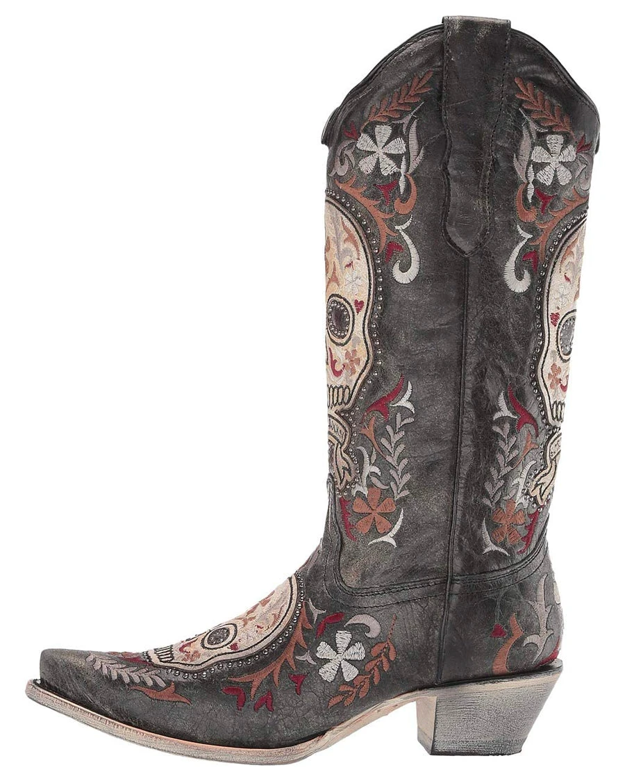 Introducing Corral Women’s Sugar Skull Western Boots: the ultimate fusion of edgy glamour and exquisite craftsmanship. These striking boots are designed for trailblazing women who crave an awe-inspiring statement piece to complete their wardrobe. Featuring intricate embroidery and studded overlay, these boots effortlessly blend boldness and elegance to create an unforgettable look. Detailed skull stitching breathes life into each carefully crafted boot, accentuating their striking beauty amidst the dazzling display of embellishments. The three beautiful skulls create an eye-catching focal point, radiating a sense of power and mystique that is sure to turn heads wherever you go. Embrace your daring side and make a statement with the irresistible Corral Women’s Sugar Skull Western Boots – the ultimate in showstopping footwear. Don’t wait to get your hands on these coveted boots; grab your pair today and prepare to conquer the world in unparalleled style.