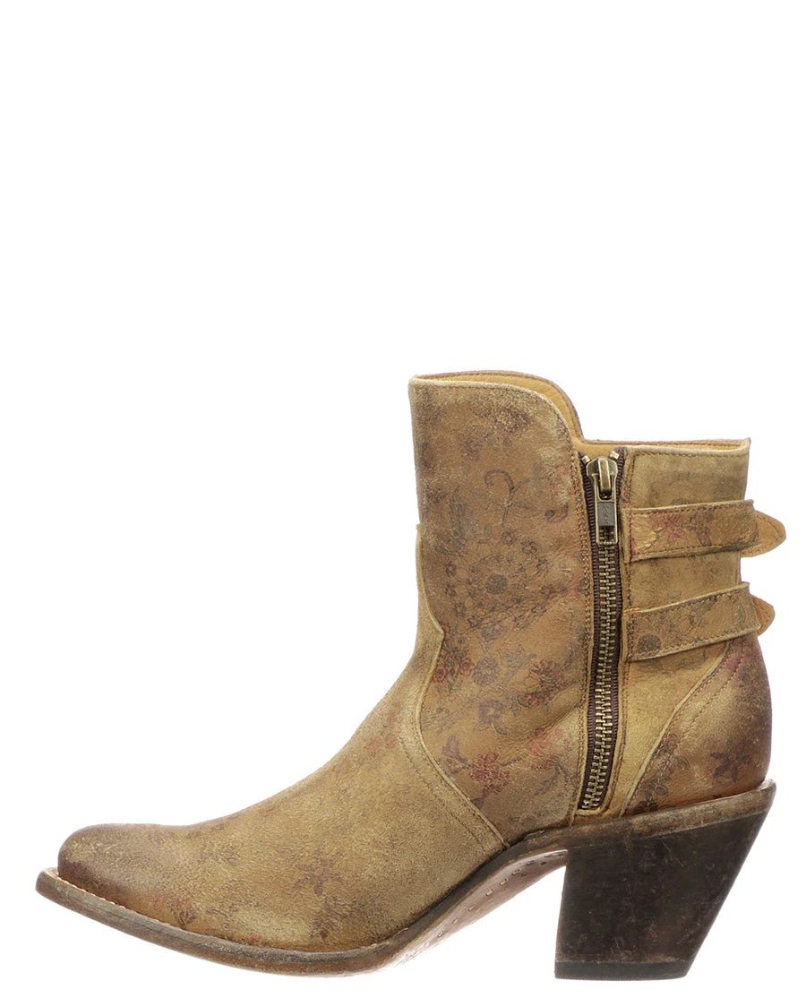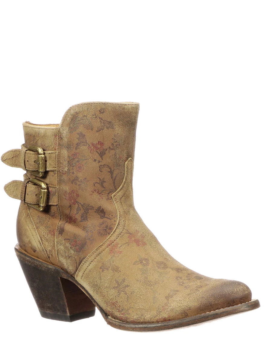 These Lucchese Catalina booties are perfect with a pair of bootcut jeans. They feature distressed printed leather throughout the vamp and shaft. The variation in color blends to a darker toe. The higher front shaft and vamp detail will look great peeking out from under your jeans. The double buckles and side zipper will ensure a perfect fit. These are ideal for when you want to look casual, but still put together. These boots are everything you’d expect from Lucchese with a unique, casual flair.