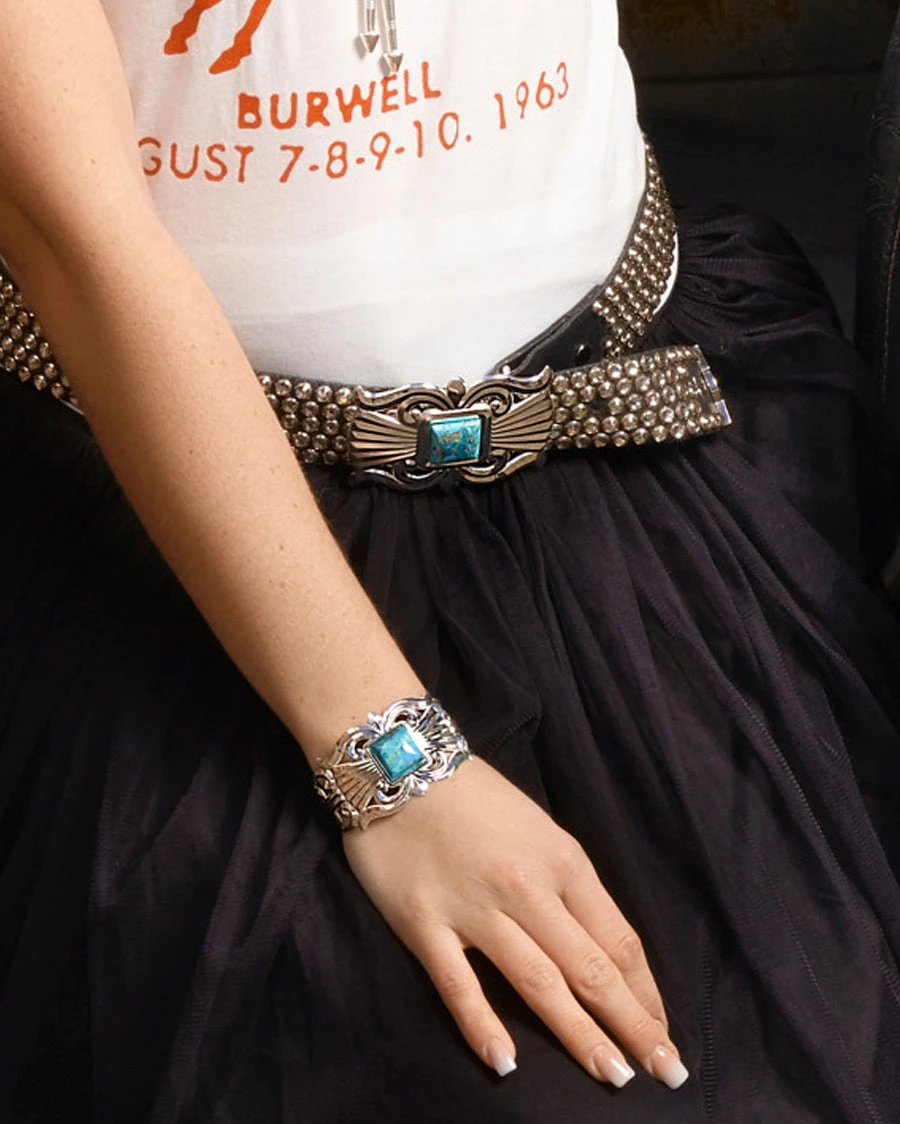 - Hand-Cut Center Square Natural Turquoise