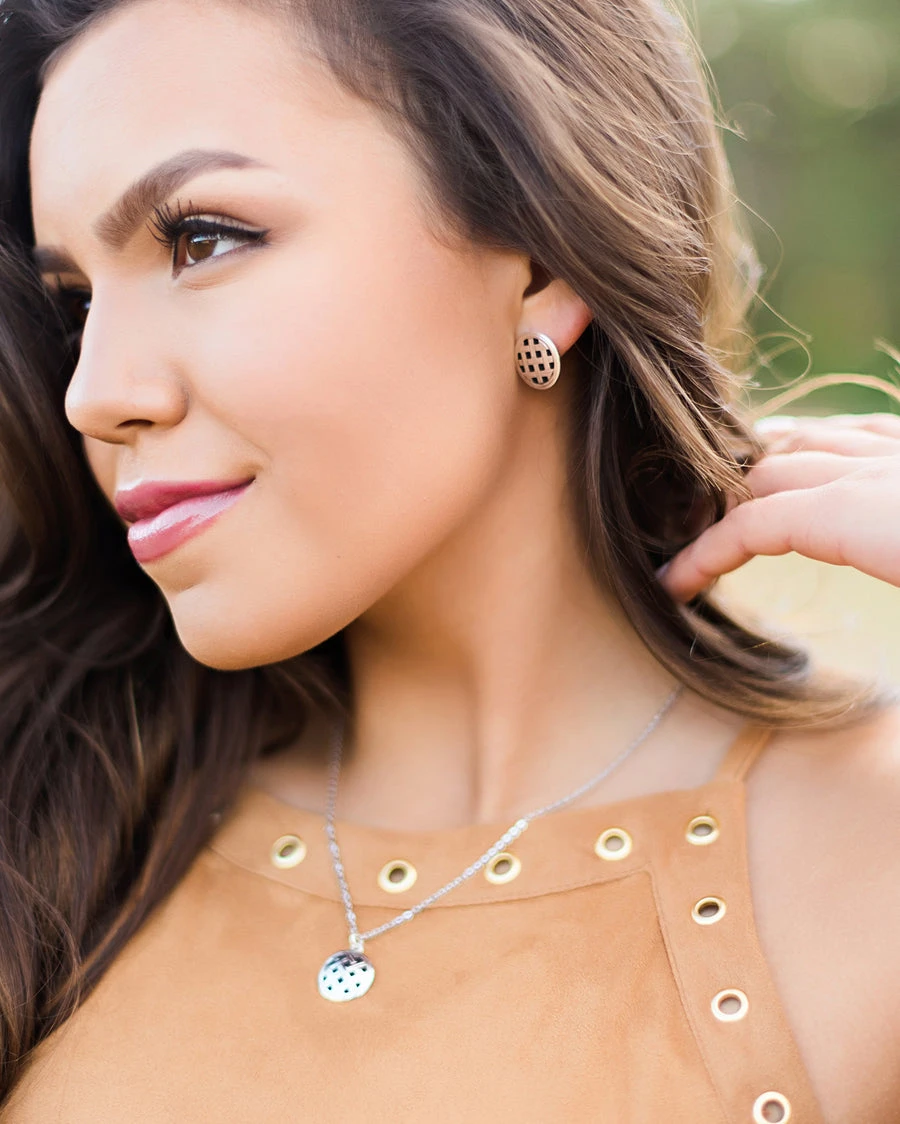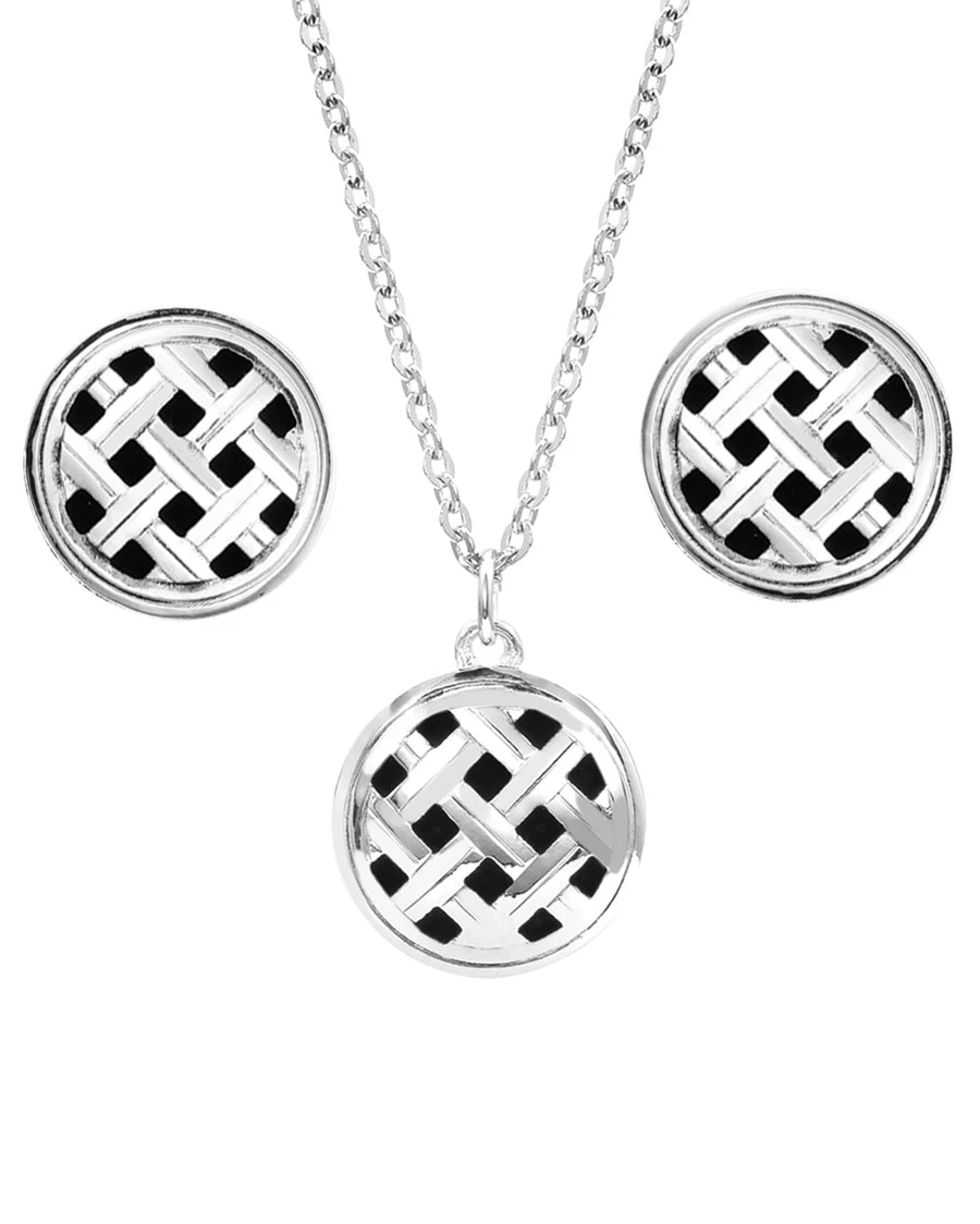 - Round Pedants with Intersecting Lines in Weave Like Pattern