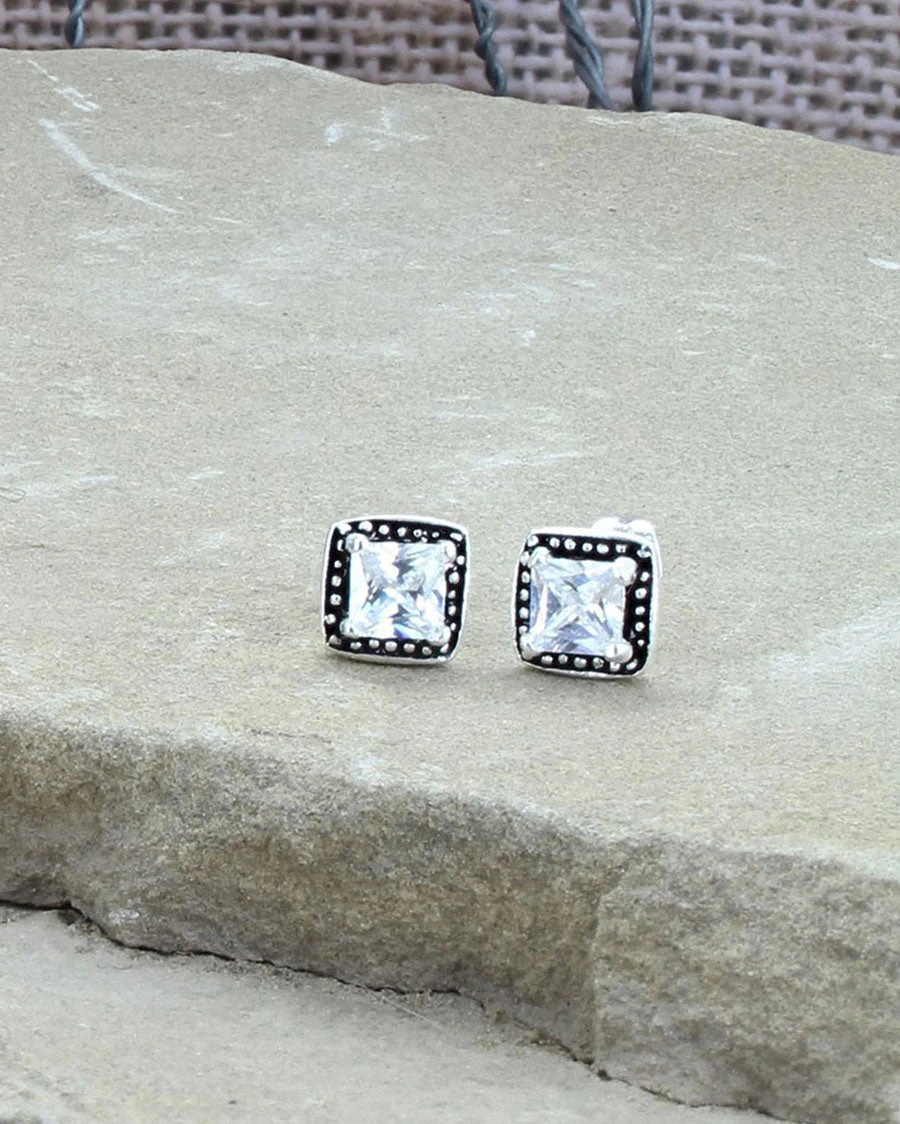 - Materials: Silver plate over a brass base. Cubic zirconia stones.