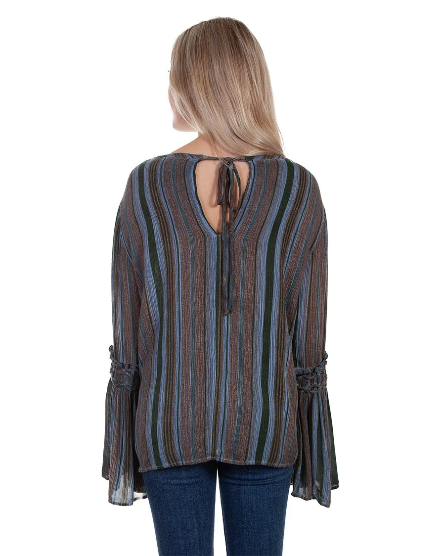 - This Bold Stripped Pullover Top Is Demin Friendly And Features A Scoop Neck With Long Stylish Bell Sleeves