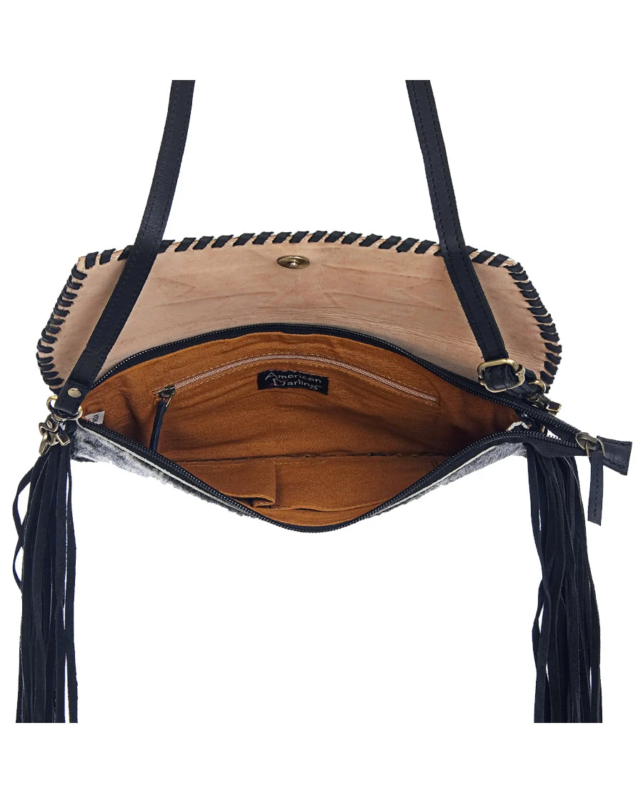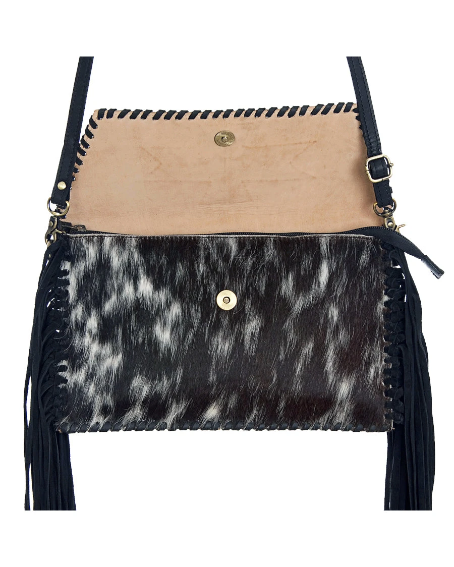 - Black Cowhide Hair-On Leather Clutch