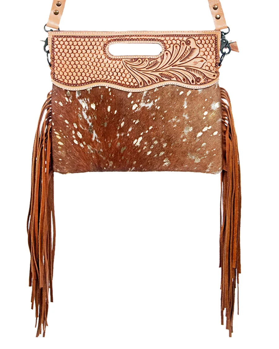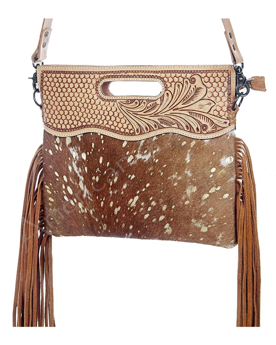 This Fringed Charm Purse is just what your wardrobe needs to finish off any look! Crafted from luxurious, genuine hide leather, this bag boasts beautiful tooled details and intricate fringe that lends an air of sophistication to your outfit. Whether you’re stepping out for lunch or shopping with friends, this purse looks stylish and chic. Plus, its generous interior provides plenty of space for all your essential items. You’ll fall in love with the classic design and high quality craftsmanship of this sophisticated accessory. Give your wardrobe a charming update that you’ll reach for time and time again!