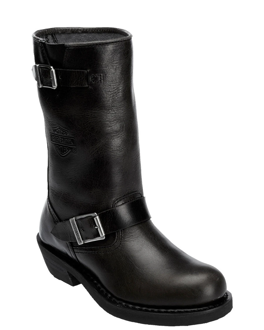 You don’t have to ride a motorcycle to appreciate these Harley Davidson boots. These boots have the look of a traditional motorcycle boot with a twist. For instance, the double buckle style instead of the classic harness, give them a unique touch. With the Harley Davidson logo embossed on the shaft, you know that you’re still sporting the iconic brand. The pull-on shaft features a full length cushion sock lining. The soles are rubber with a low 1.5” heel.