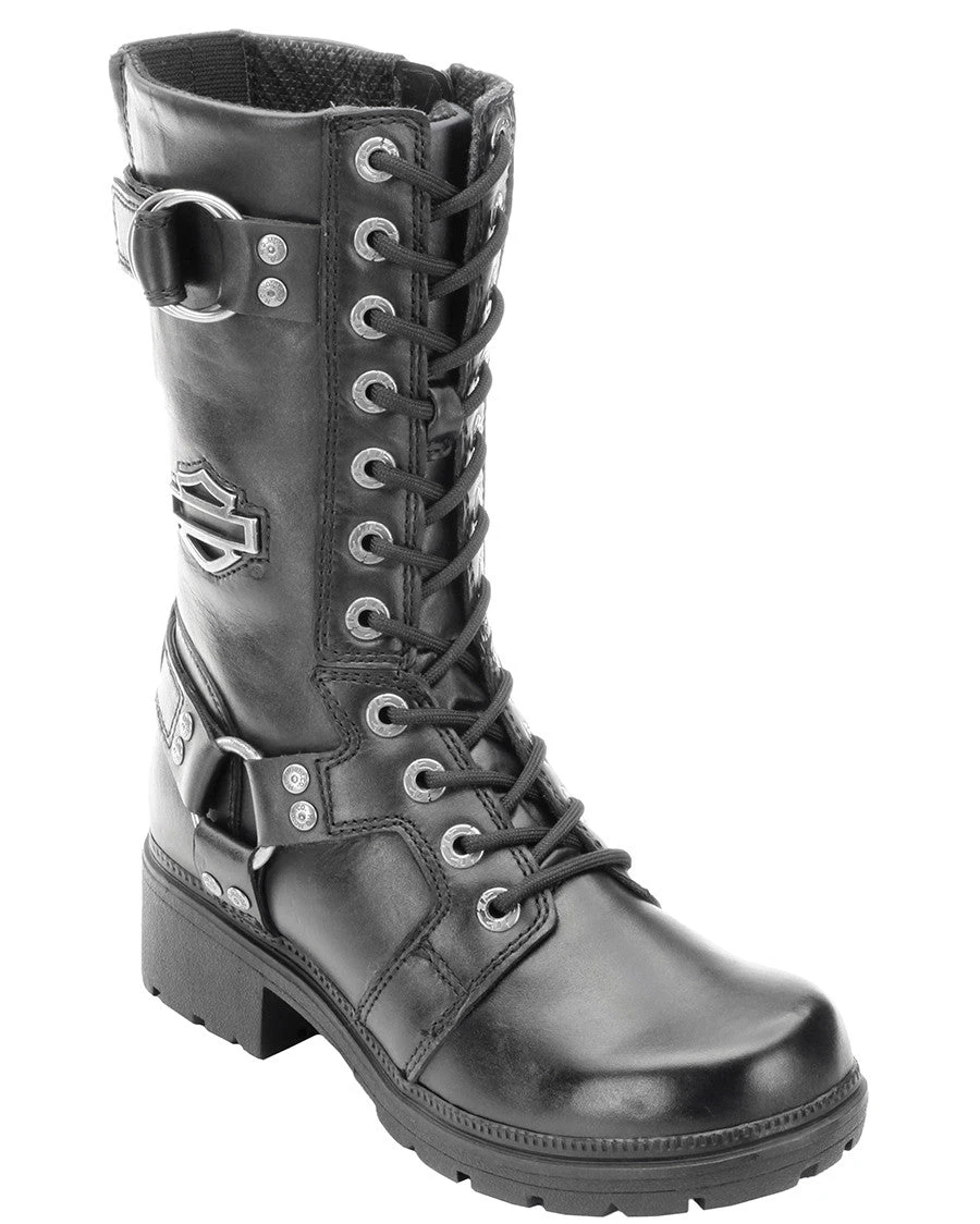 The details and hardware on these Harley Davidson boots make them as tough on the outside as they are comfortable on the inside. Show off your biker look in these rugged boots. The lace up front and side buckles give these boots a tough look that can be incorporated into a variety of outfits. Paired with jeans and a flannel shirt, you’ll be sporting your biker style.